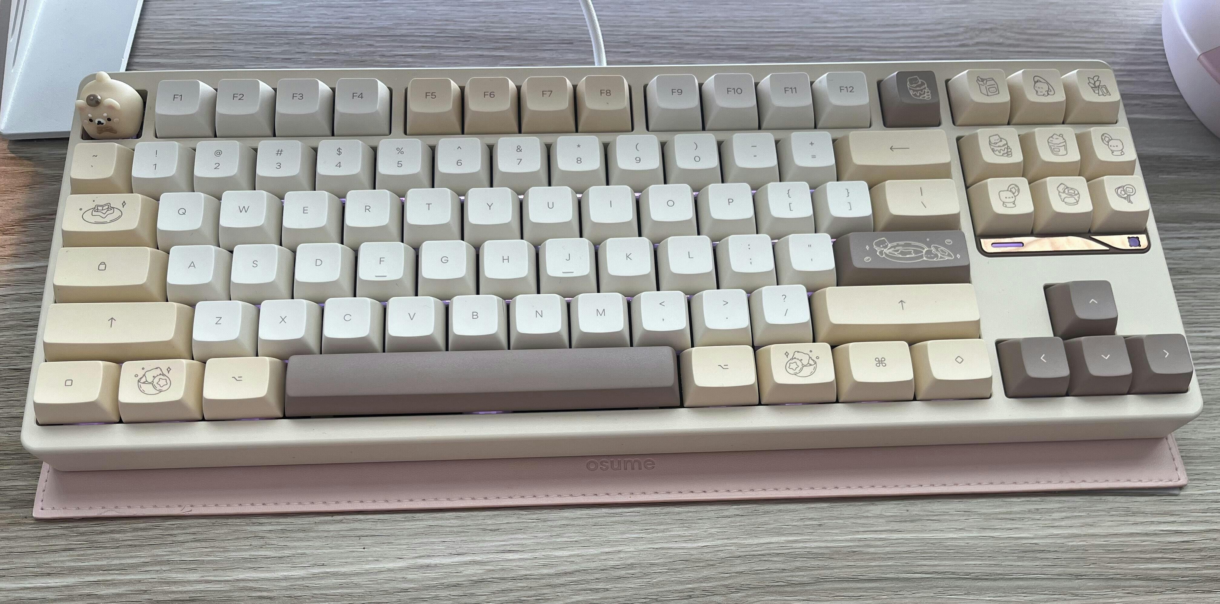 learn how to share yoursI took a gamble with trying a different profile. I've tried other profiles like MOA in the past and really did not like them, and Osume's cherry profile sets are tried and true. Still, I loved the look of osume's marshmallow. I also feel like Osume's keycaps in general are more fitting for my smaller fingers, so I don't tire out as easily typing on them. I took the chance on the marshmallow and just like I had hoped, the keys didn't feel as large to my fingers as MOA keys. I worried I was going to have to get used to them, but I really didn't have to at all. One of my new favorite sets for sure! I've been using the board I put these on every day since they arrived.